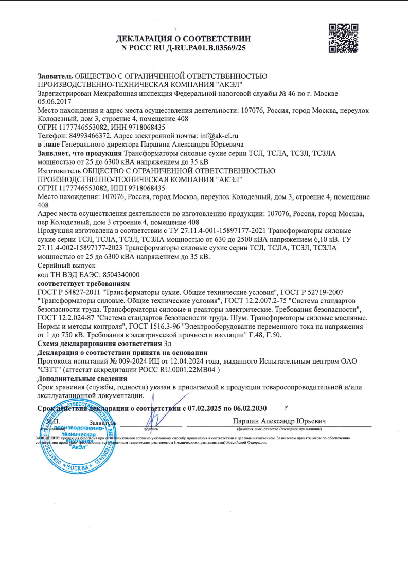 Каждый трансформатор проходит приемо-сдаточные испытания в собственной аттестованной испытательной лаборатории на соответствие ГОСТ и ТУ
