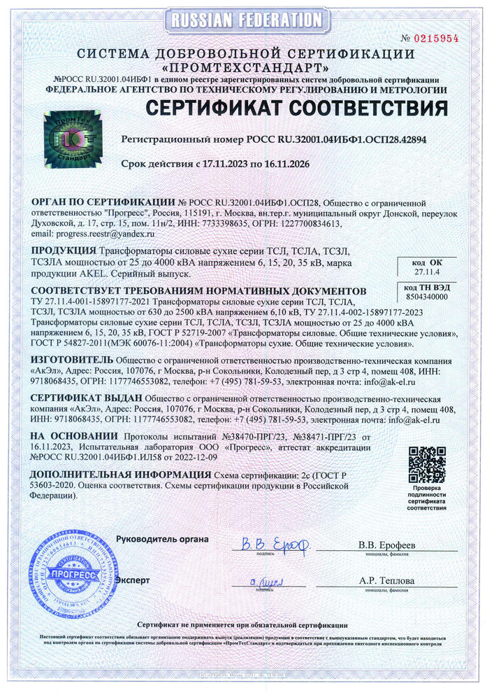 Чтобы купить сухой трансформатор AKELCAST LS — заполните опросный лист и пришлите его на почту: trafo@ak-el.ru