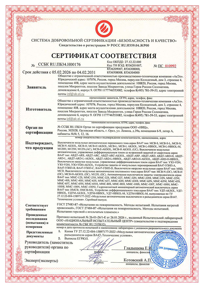 Запросы по продукции ВА47-MМС отправляйте на e-mail: ak-el@ak-el.ru