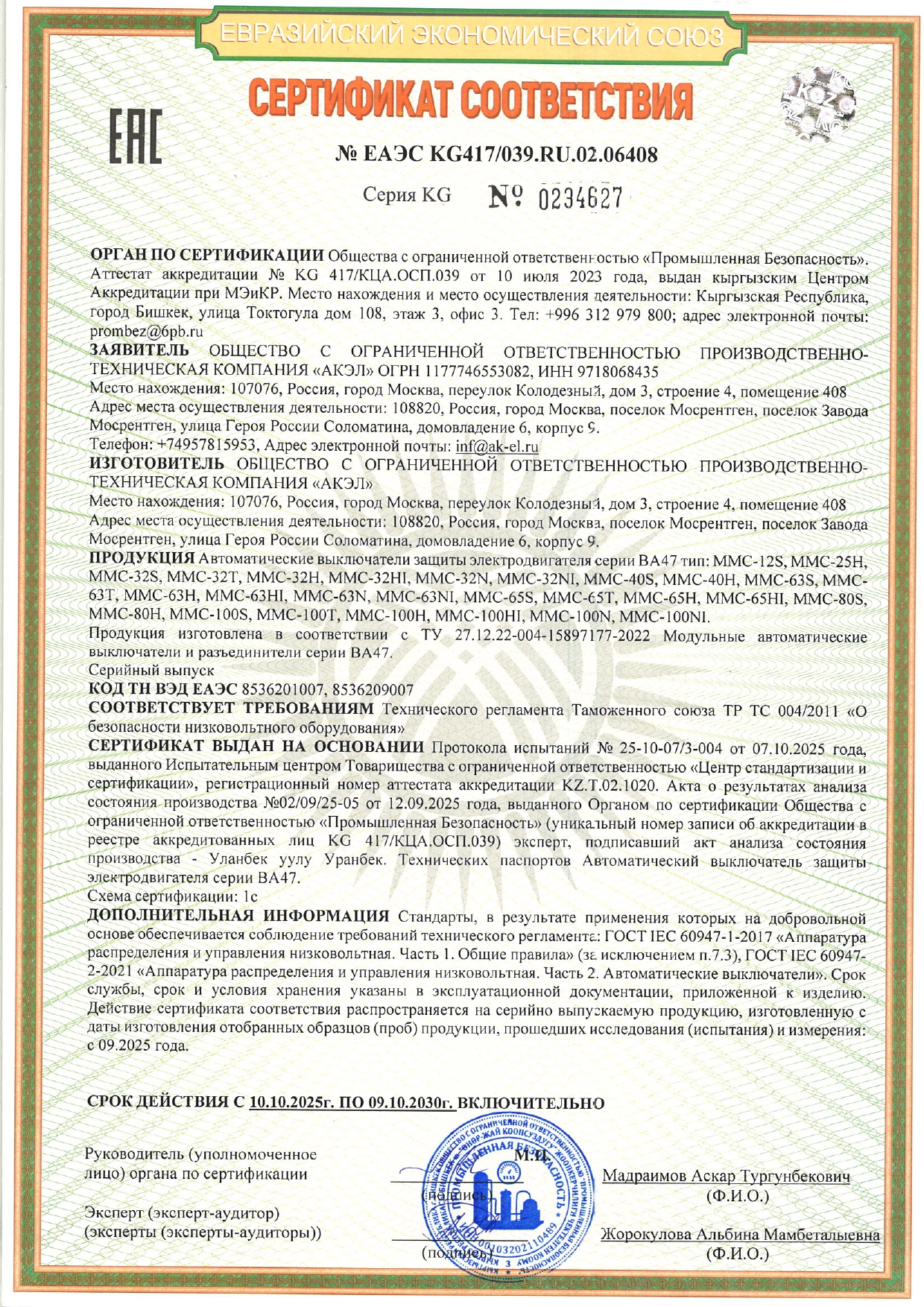 ВА47 MMC — Автоматические выключатели защиты электродвигателя до 100 А