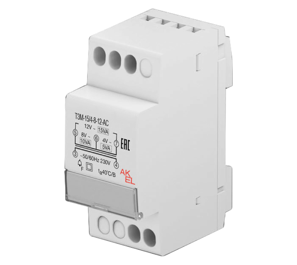 - звонковые трансформаторы ТЗМ с вторичным напряжением 4-8-12-24 В и максимальной номинальной мощностью 15—30—40—63 ВА;